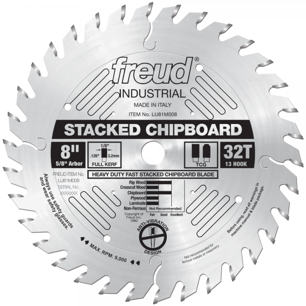 This blade is ideal for sizing sheet goods (chipboard, plywood, laminates, MDF) where speed is more important than a smooth finish or when cutting stacks of material. These blades are best used when cutting plywood and composition material, but they can also be used with hardwood and softwood.